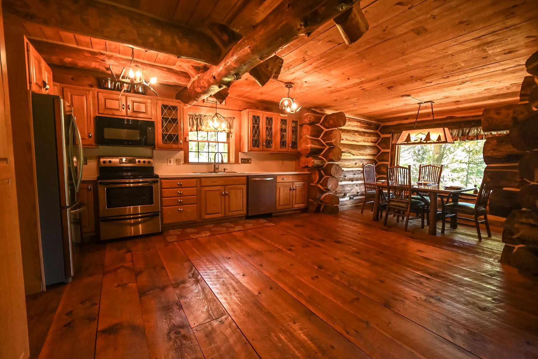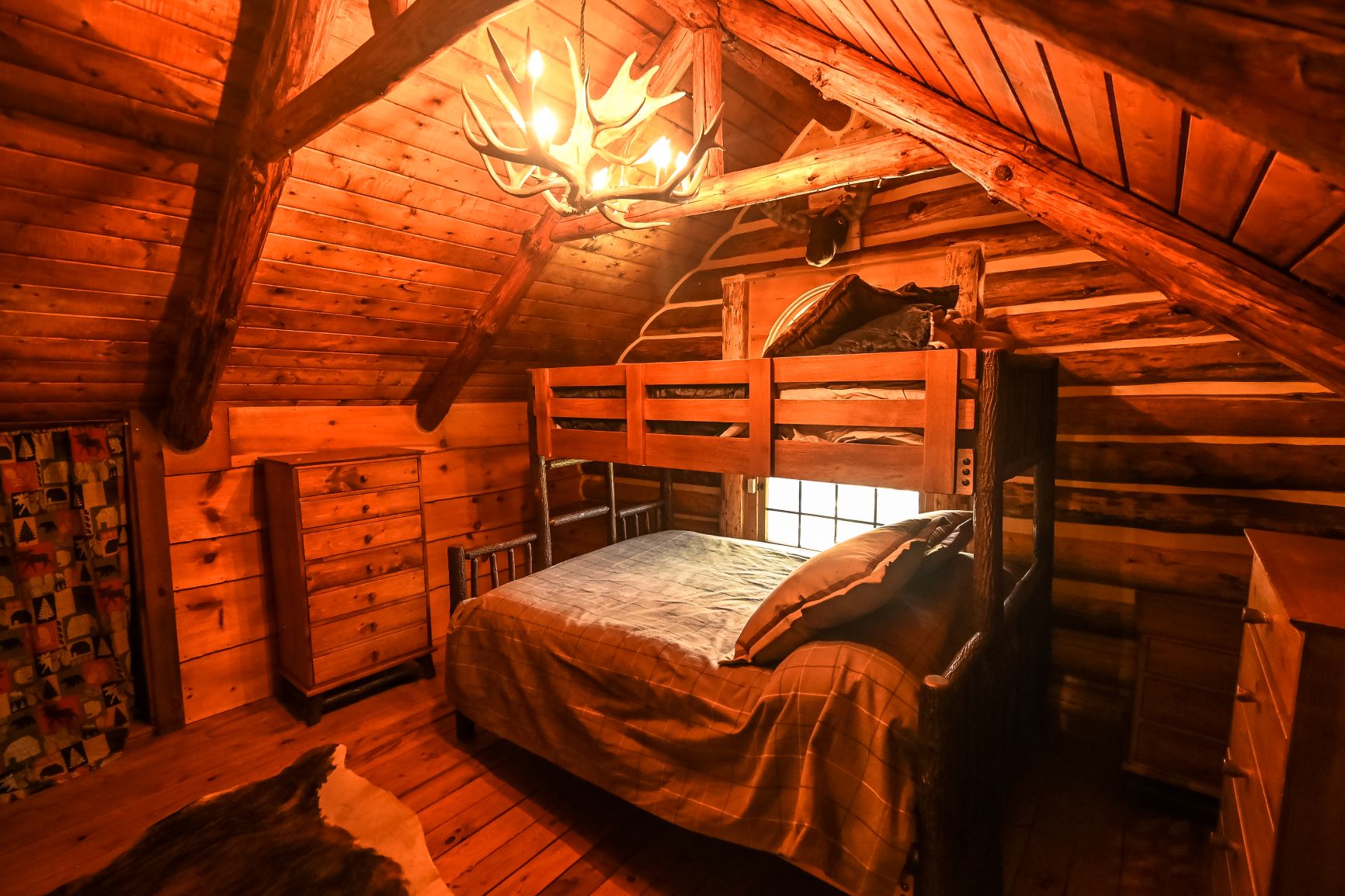 antler chandeliers, custom kitchen with cozy breakfast nook, master suite, 2 lofts for overflow!